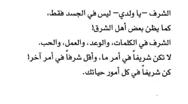 الشّرف ليس مُؤنّثًا فقط، وليس لِلذُّكور نَصيب منه، بل إنّه مفهومٌ شاملٌ يُدْخِل الجِنْسَيْن تحت مِظَلَّته، ولا يجوز الخروج عنه مُطْلَقًا، الشَّرف ليس لواءً تحمله المرأة، وينبغي عليها الحفاظ عليه وحدها. شَرَفُكَ في ذاتِكَ، أفعالك تحمل بعضًا من الشَّرف والنُّبل أو تتلوّث بالخِسَّة والنَّذالة. شرف الإنسان يخرج مِن مَسَام جِلْده كلَّ لحظة ليتجوّل بين البشر عائدًا بمضمونٍ واحد وعنوانٍ مُختصَر يُخبرنا بمدى حفاظه على الشّرف من عَدَمِه.