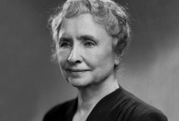 هيلين كيلر الأديبة والناشطة الأمريكية المعروفة. ولدت في ولاية ألاباما الأمريكية في عام 1880. فقدت عائلتها كل أموالها أثناء الحرب الأهلية وقتها فعاشت حياة فقيرة جدًّا في صغرها. أصابها مرض عُضال ففقدت السمع والنظر وكان عمرها وقتئذ دون العاميْن، مما أثر أيضًا على قدرتها على الكلام فأصبحت شبه بكماء أيضًا.
